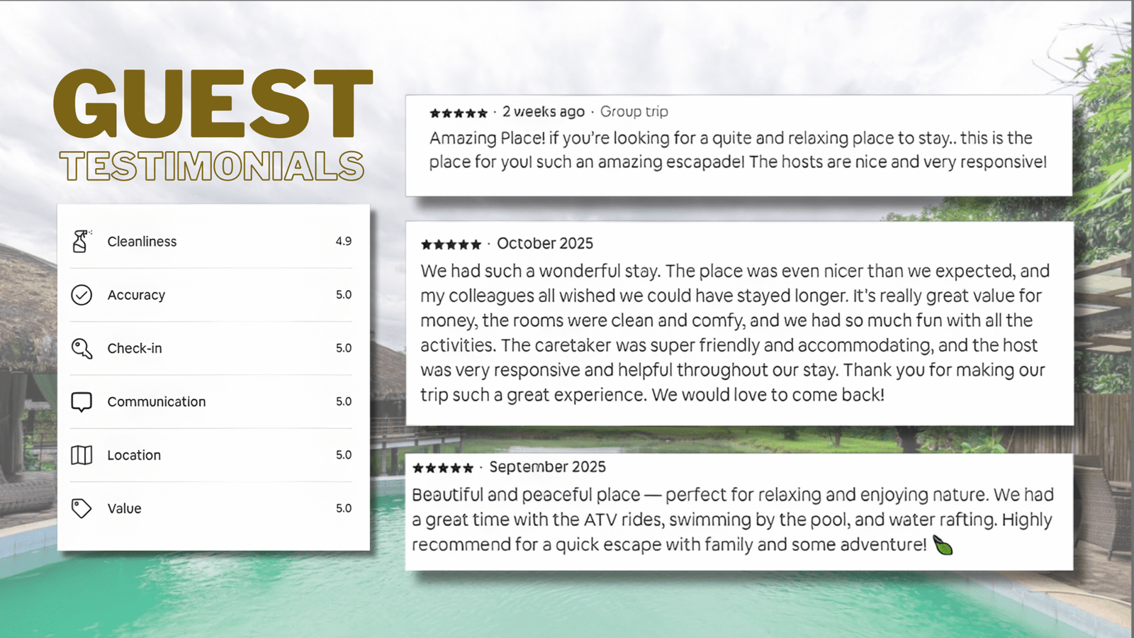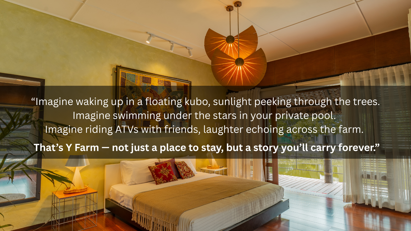it’s where families reconnect, friends laugh until sunrise, and love stories unfold. With floating kubos, a private pool, and endless farm adventures, Y Farm is more than a getaway — it’s an experience you’ll never forget.”